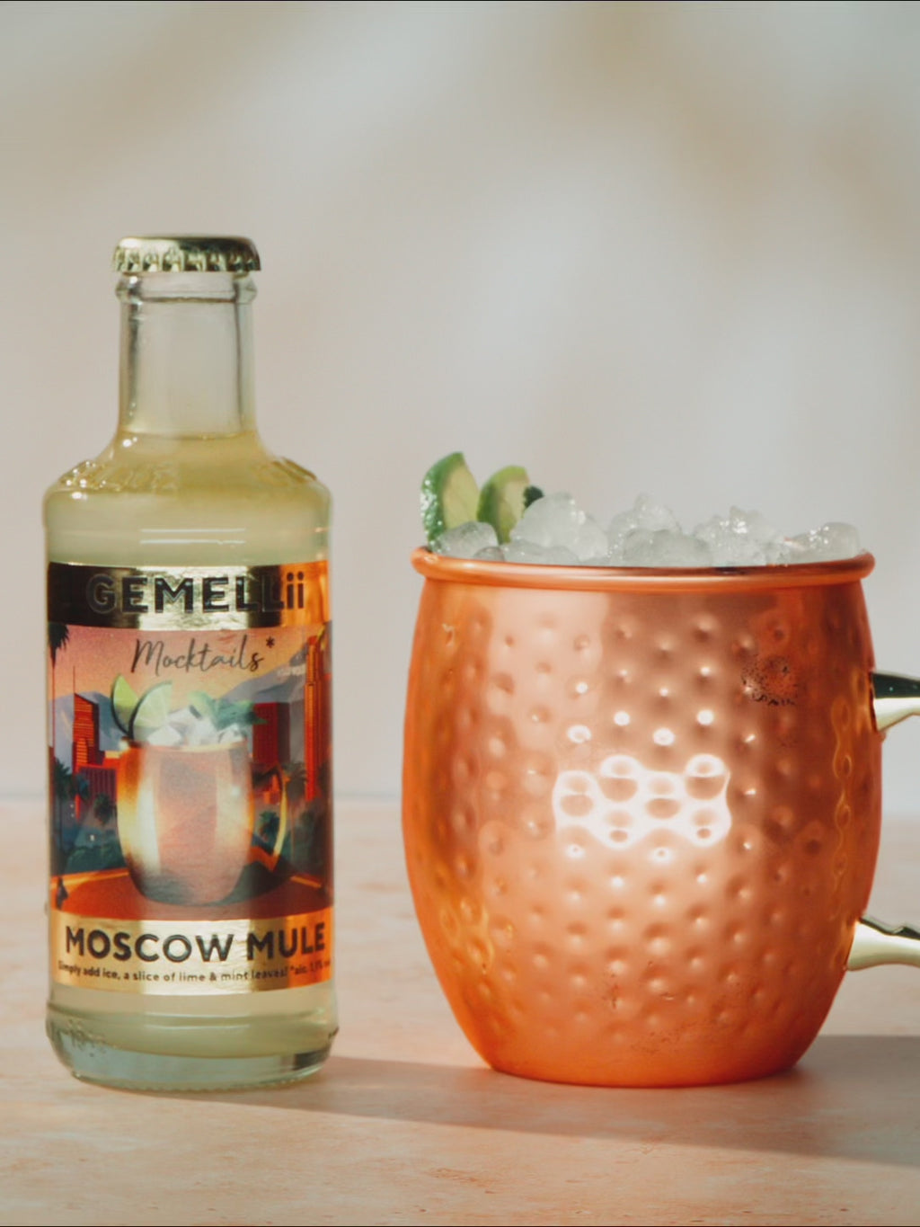 Inspiriert von Los Angeles vereint dieser Moscow Mule Mocktail den würzigen Charakter von Ginger Beer mit spritziger Limette zu einem frischen, belebenden Drink, der den pulsierenden Geist der Stadt einfängt. Eine lebendige Komposition, die klassischen Charme und Westküsten-Energie in jedem prickelnden Schluck verbindet. (*alc. 1,1 % vol)